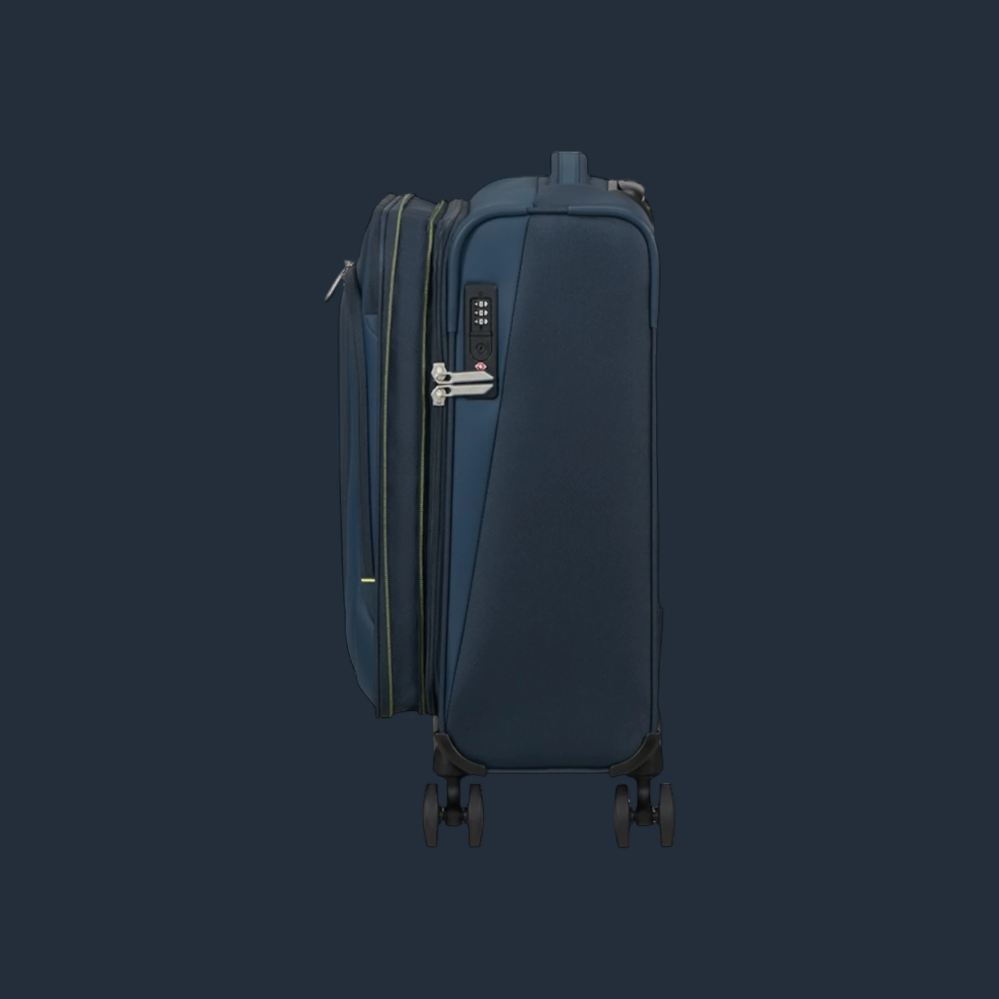 Στο εσωτερικό, τα packing ribbons οργανώνουν καλύτερα τα ρούχα και κρατούν το περιεχόμενο στη θέση του. Παράλληλα, η μεγάλη μπροστινή τσέπη με φερμουάρ και η επιπλέον μπροστινή τσέπη σου δίνουν άμεση πρόσβαση σε έγγραφα και αντικείμενα που θέλεις να βρίσκεις χωρίς καθυστέρηση. Η κλειδαριά TSA συνδυασμού ενισχύει την ασφάλεια και προστατεύει τα προσωπικά σου είδη σε κάθε διαδρομή.