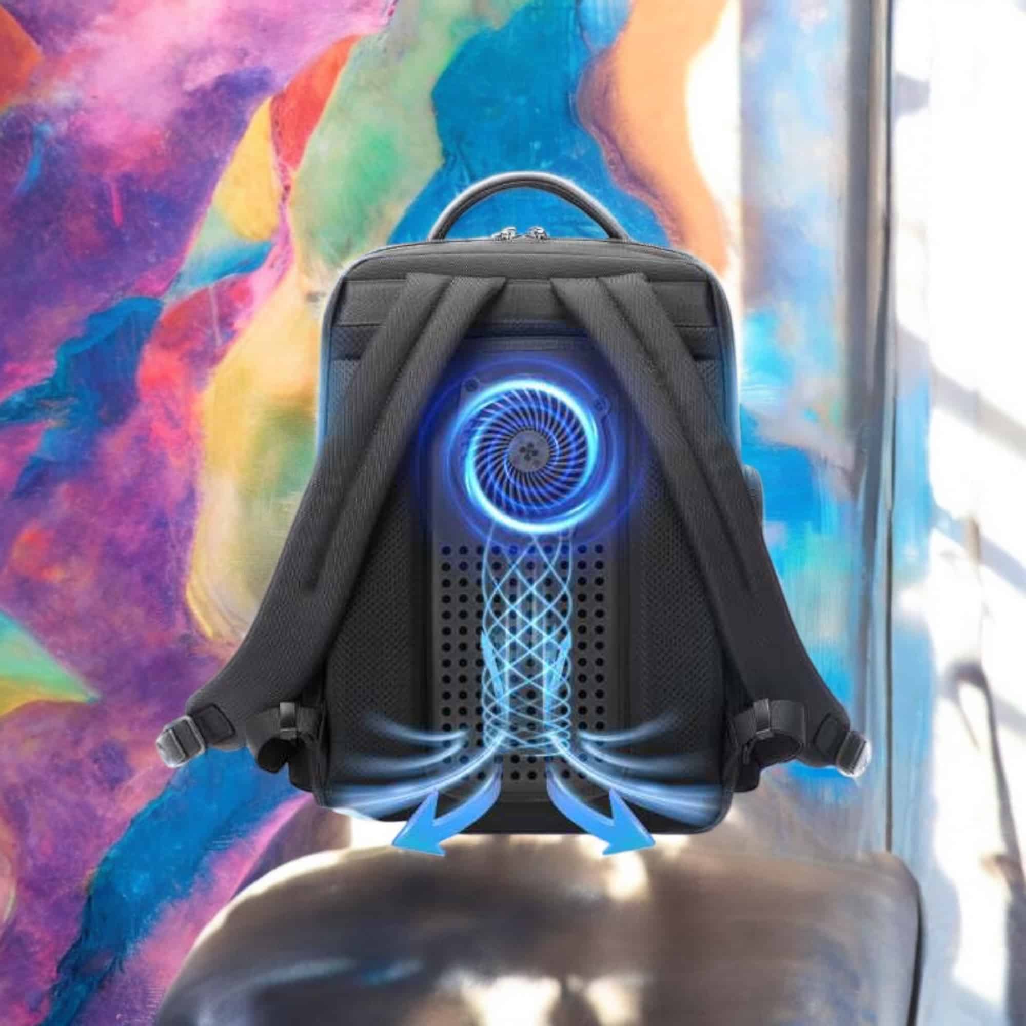 Με ενσωματωμένο ανεμιστήρα τριών ταχυτήτων, ασύρματο τηλεχειριστήριο και προηγμένο air-cooling σύστημα, το σακίδιο αυτό εξασφαλίζει ιδανική θερμοκρασία για πολύωρη χρήση. Ιδανικό για επαγγελματίες, ταξιδιώτες ή όσους κινούνται διαρκώς μέσα στην πόλη.