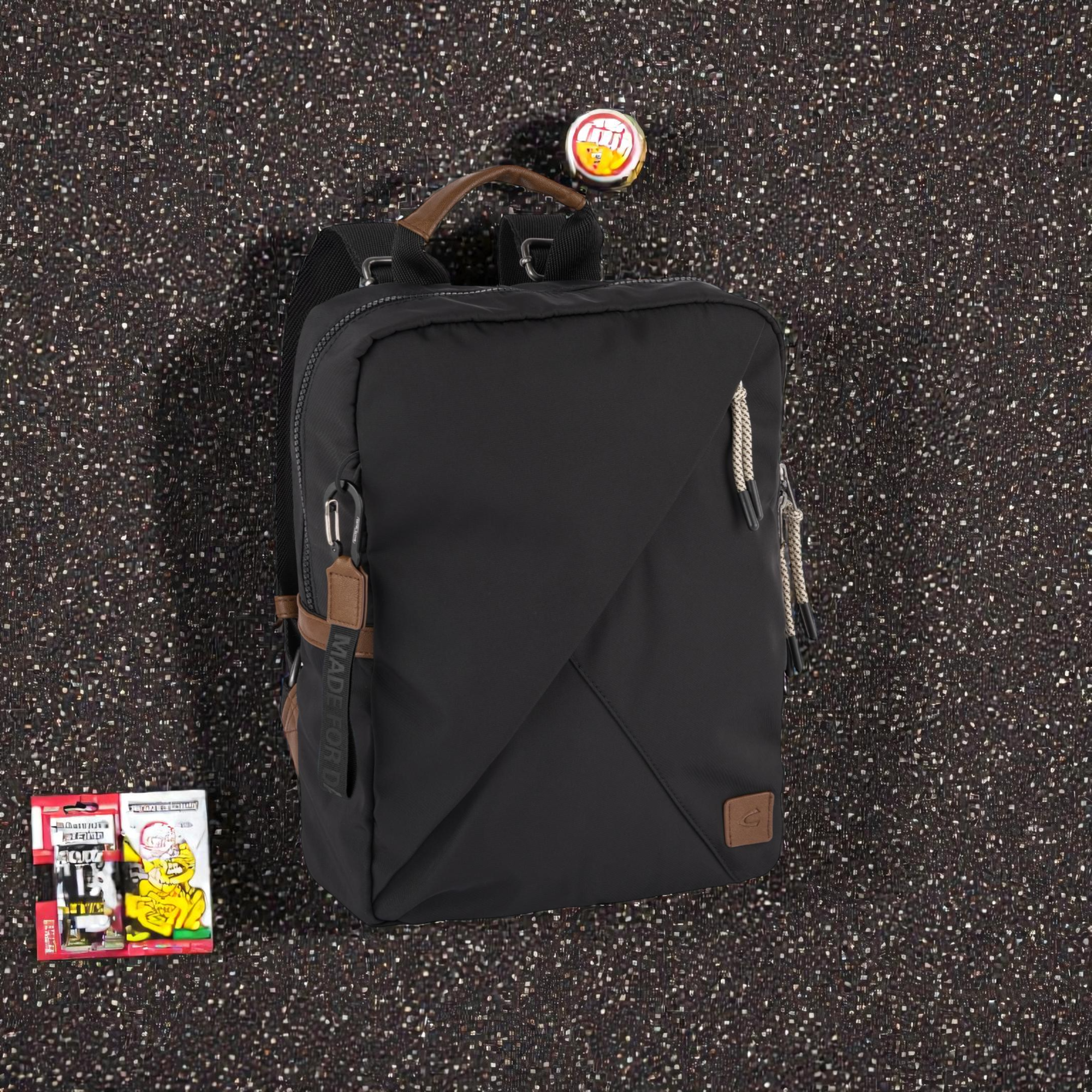 Σακίδιο μετακίνησης Camel Active Aurum σε μαύρο που δουλεύει άψογα σε πόλη, γραφείο και καθημερινές διαδρομές. Η Aurum χτίζει ένα στιβαρό αποτέλεσμα με ανθεκτικό ύφασμα δομημένης πλέξης από ανακυκλωμένο πολυεστέρα, ώστε να κρατά σωστά το σχήμα και να αντέχει στη χρήση. Τα μεταλλικά στοιχεία σε αντικέ ασημί απόχρωση και οι φαρδιοί ιμάντες υψηλής αντοχής προσθέτουν ποιότητα και σταθερότητα, ενώ οι διακριτικές λεπτομέρειες δίνουν χαρακτήρα χωρίς να «φωνάζουν». Τα κεντήματα, τα προσεγμένα τελειώματα στα φερμουάρ και το αποσπώμενο διακοσμητικό στοιχείο που γίνεται και μπρελόκ κλειδιών, κάνουν το σακίδιο πιο πρακτικό μέσα στη μέρα.