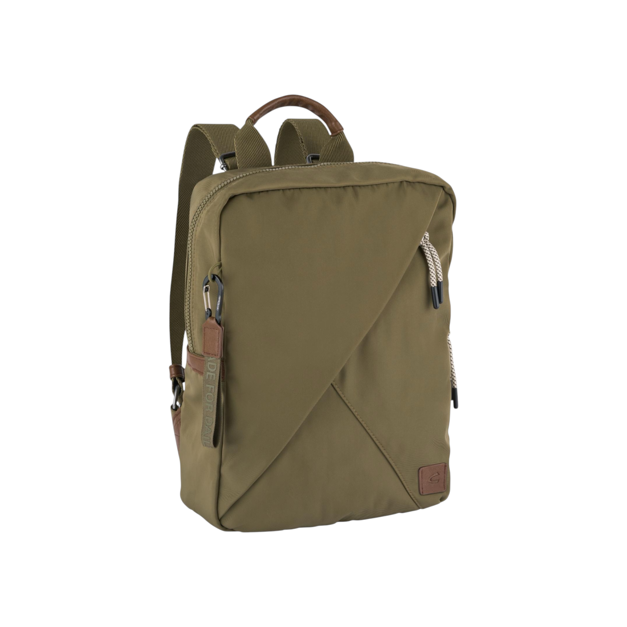 Σακίδιο πλάτης Camel Active Aurum σε χακί που δένει το καθημερινό ύφος με στιβαρή, λειτουργική κατασκευή. Η Aurum χρησιμοποιεί ανθεκτικό ύφασμα με δομημένη πλέξη από ανακυκλωμένο πολυεστέρα, ώστε να αντέχει στη χρήση και να κρατά σωστά το σχήμα του. Τα μεταλλικά στοιχεία σε αντικέ ασημί απόχρωση και οι φαρδιοί ιμάντες υψηλής αντοχής ανεβάζουν την αίσθηση ποιότητας, ενώ οι διακριτικές λεπτομέρειες κρατούν το look σύγχρονο και καθαρό. Επιπλέον, τα κεντήματα, τα προσεγμένα τελειώματα στα φερμουάρ και το αποσπώμενο διακοσμητικό στοιχείο που λειτουργεί και ως μπρελόκ κλειδιών, προσθέτουν χαρακτήρα και πρακτικότητα στην ημέρα σου.
