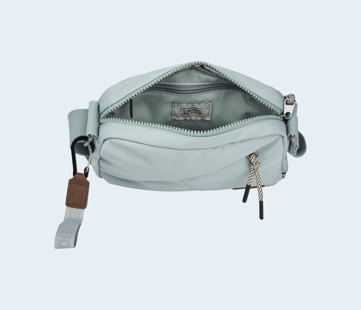 Τσάντα χιαστί Camel Active Aurum σε σιέλ που δίνει καθημερινή άνεση, στιβαρή κατασκευή και καθαρό modern ύφος. Η σειρά Aurum χρησιμοποιεί ανθεκτικό ύφασμα με δομημένη πλέξη από ανακυκλωμένο πολυεστέρα, ώστε να αντέχει στη χρήση και να κρατά σωστά το σχήμα της. Τα μεταλλικά στοιχεία σε αντικέ ασημί απόχρωση και οι φαρδιοί ιμάντες υψηλής αντοχής ανεβάζουν την αίσθηση ποιότητας, ενώ οι προσεγμένες λεπτομέρειες ολοκληρώνουν την εικόνα. Τα διακριτικά κεντήματα, τα ειδικά τελειώματα στα φερμουάρ και το αποσπώμενο διακοσμητικό στοιχείο που γίνεται και μπρελόκ κλειδιών, προσθέτουν χαρακτήρα και πρακτικότητα στην καθημερινότητά σου.