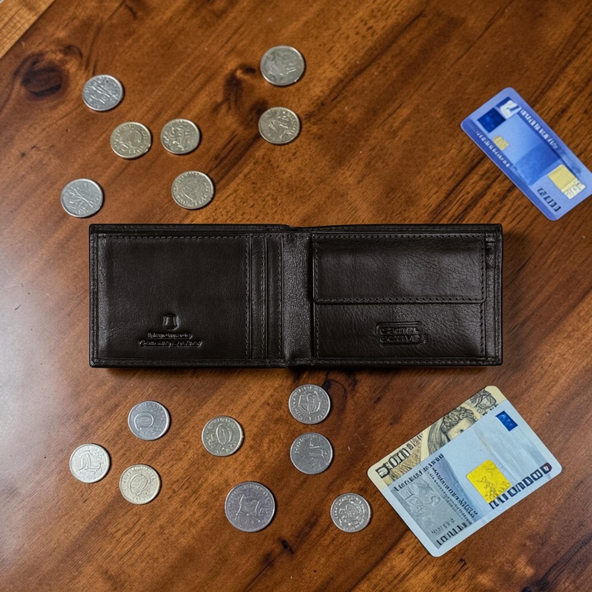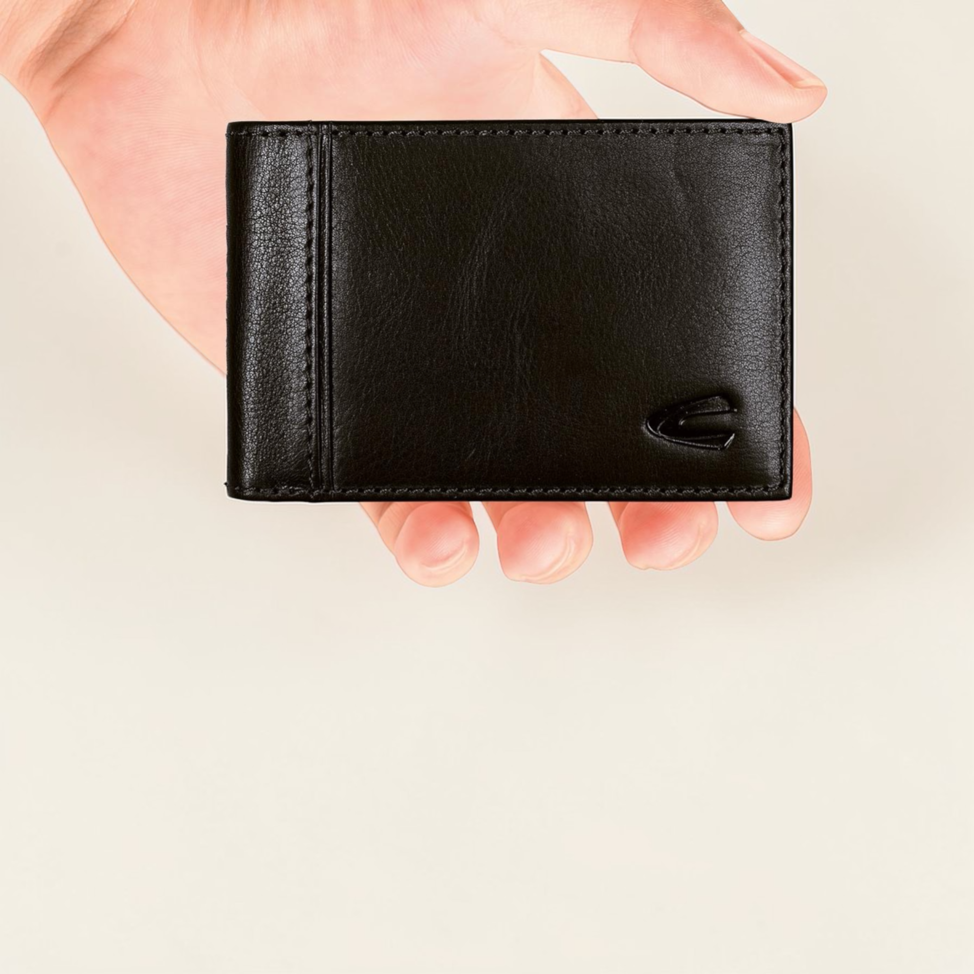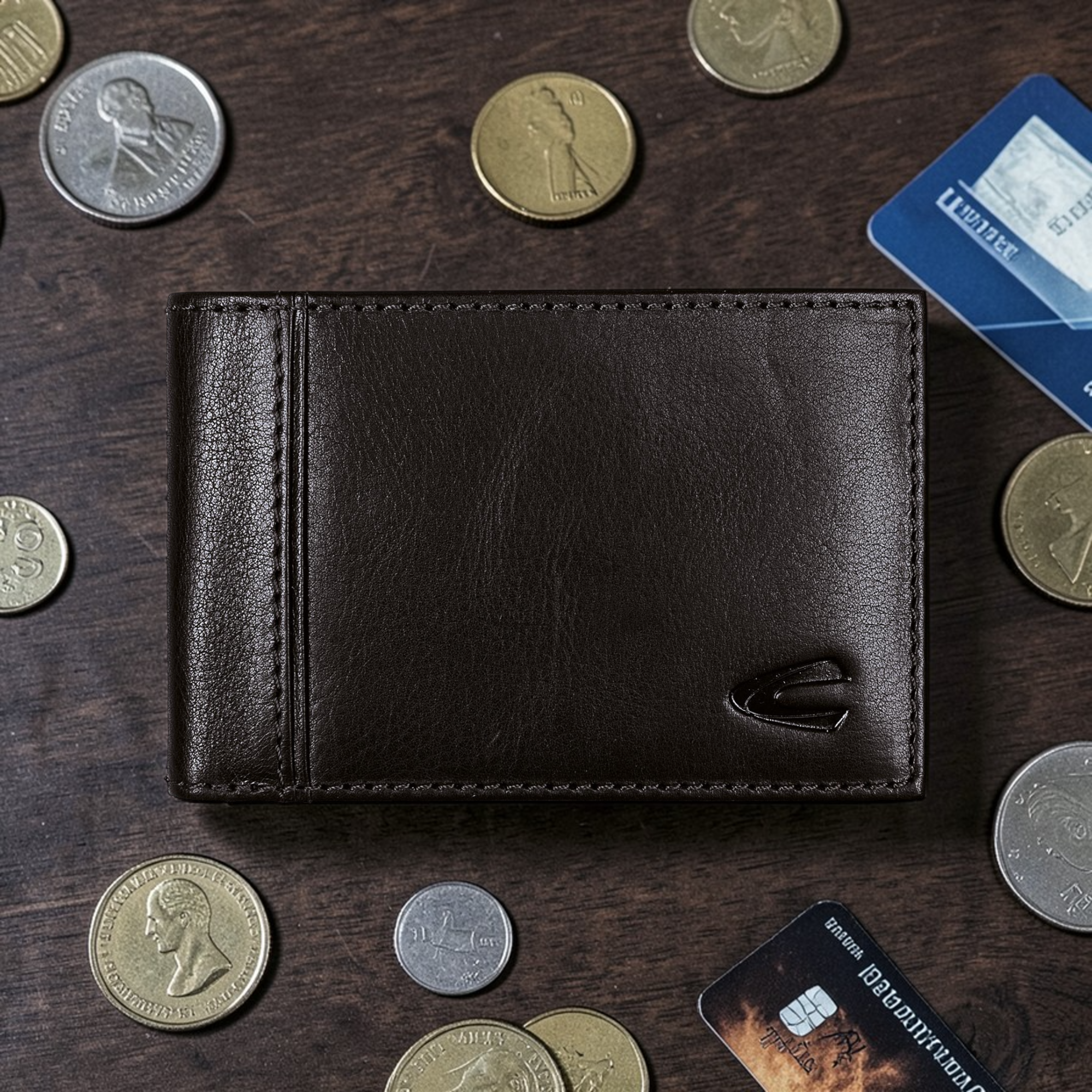 ανδρικό δερμάτινο πορτοφόλι camel active Pine σε μαύρο χρώμα που συνδυάζει στιβαρό χαρακτήρα και καθαρή κομψότητα. Το φυτικά επεξεργασμένο δέρμα μοσχαριού δίνει φυσική, όμορφη υφή, ενώ παράλληλα κρατά την αίσθηση premium σε κάθε επαφή. Η κάθετη γραμμή με τη λεπτή ρίγα προσθέτει κλασική φινέτσα και κάνει το πορτοφόλι να ξεχωρίζει χωρίς υπερβολές. Το λεπτό, πλάγιο/οριζόντιο σχήμα του κάθεται σωστά στην τσέπη και σε βοηθά να κινείσαι άνετα όλη μέρα.