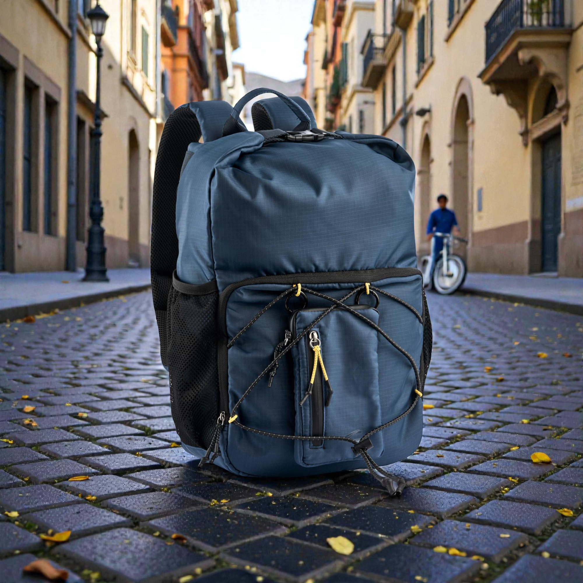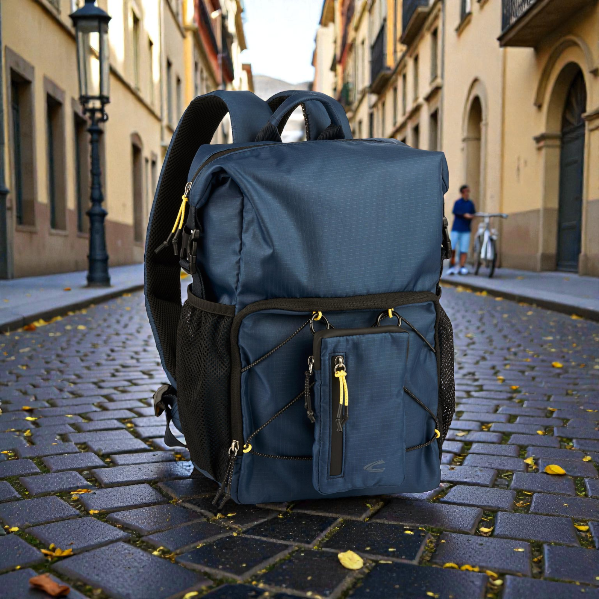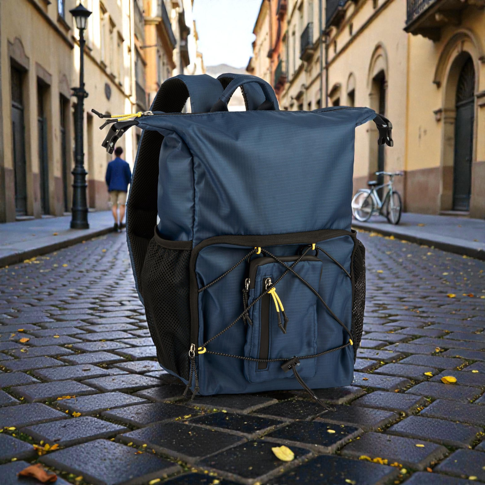 Το rolltop design σου επιτρέπει να ρυθμίζεις τη χωρητικότητα γρήγορα. Κλείνεις με push lock και έχεις σταθερό κράτημα, ενώ η ευρύχωρη κύρια θήκη με φερμουάρ προστατεύει τα πράγματά σου. Επιπλέον, οι ελαστικοί ιμάντες σύσφιξης στο μπροστινό μέρος βοηθούν να “δέσεις” το φορτίο, ειδικά όταν κινείσαι γρήγορα. Για γρήγορη πρόσβαση, χρησιμοποιείς την μπροστινή τσέπη με φερμουάρ, ενώ η αποσπώμενη μπροστινή τσέπη σου δίνει έξτρα ευελιξία για αντικείμενα που θες ξεχωριστά. Επίσης, οι δύο πλαϊνές διχτυωτές τσέπες με ελαστικό τελείωμα είναι ιδανικές για μπουκάλι ή μικροπράγματα που θες άμεσα.