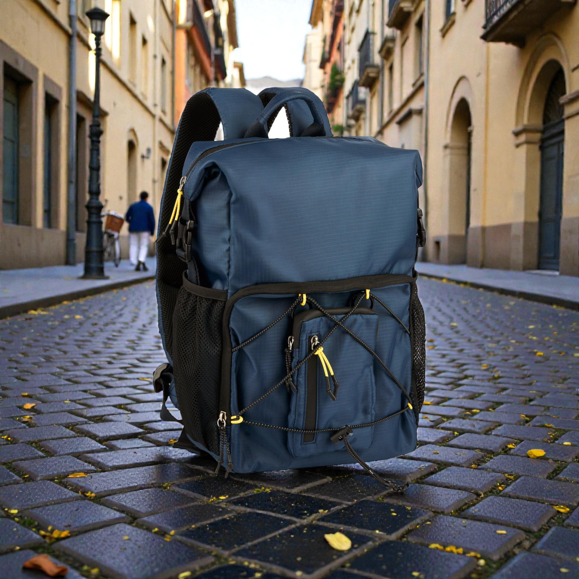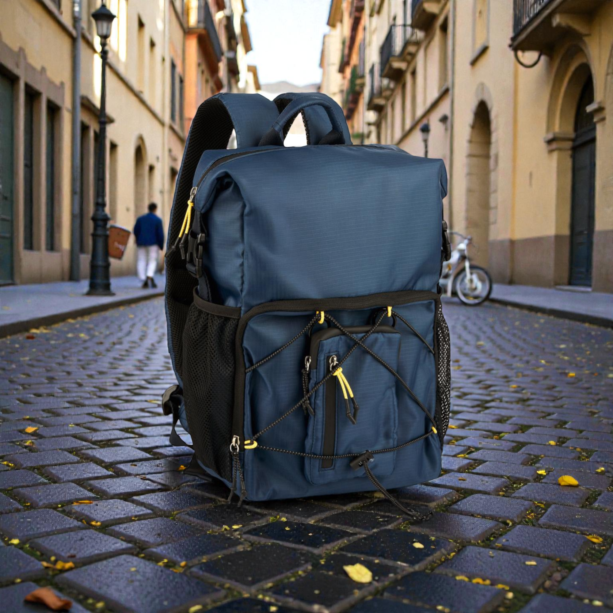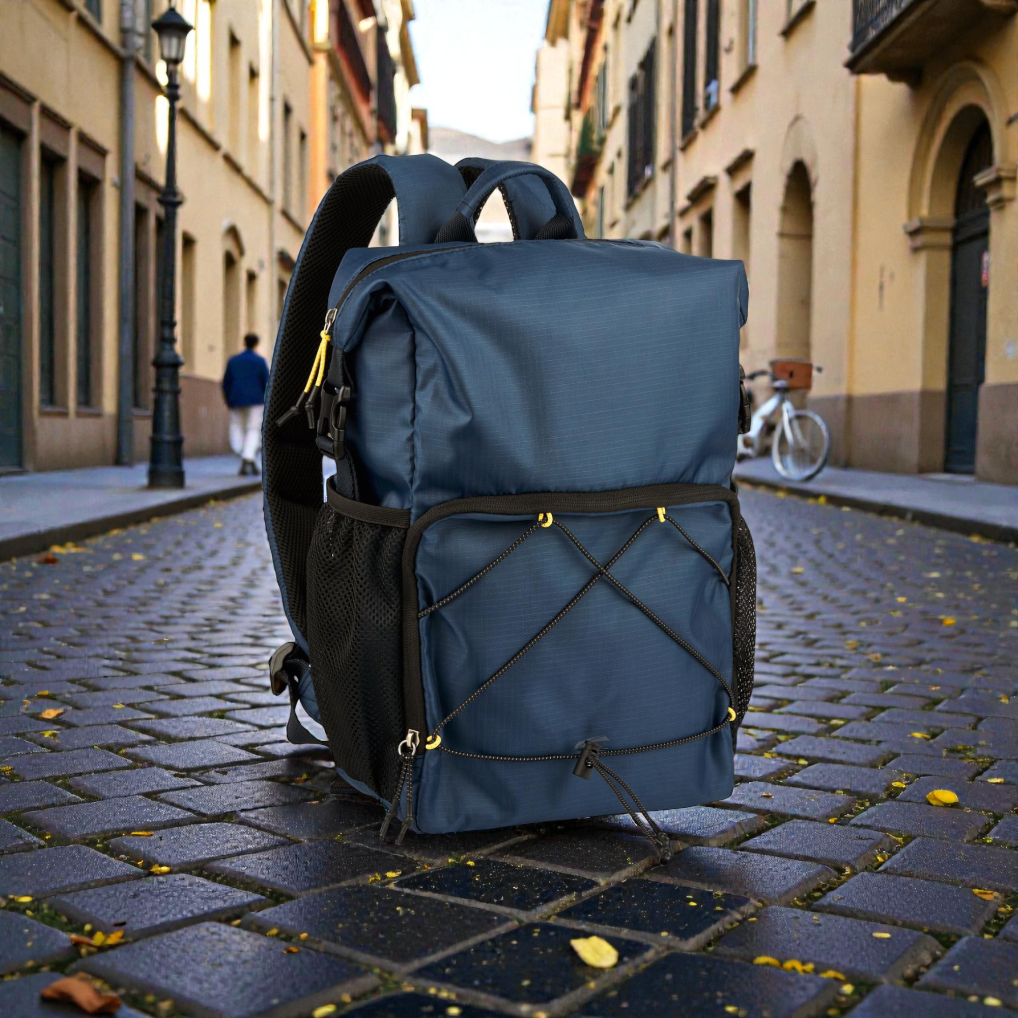 Το rolltop design σου επιτρέπει να ρυθμίζεις τη χωρητικότητα γρήγορα. Κλείνεις με push lock και έχεις σταθερό κράτημα, ενώ η ευρύχωρη κύρια θήκη με φερμουάρ προστατεύει τα πράγματά σου. Επιπλέον, οι ελαστικοί ιμάντες σύσφιξης στο μπροστινό μέρος βοηθούν να “δέσεις” το φορτίο, ειδικά όταν κινείσαι γρήγορα. Για γρήγορη πρόσβαση, χρησιμοποιείς την μπροστινή τσέπη με φερμουάρ, ενώ η αποσπώμενη μπροστινή τσέπη σου δίνει έξτρα ευελιξία για αντικείμενα που θες ξεχωριστά. Επίσης, οι δύο πλαϊνές διχτυωτές τσέπες με ελαστικό τελείωμα είναι ιδανικές για μπουκάλι ή μικροπράγματα που θες άμεσα.