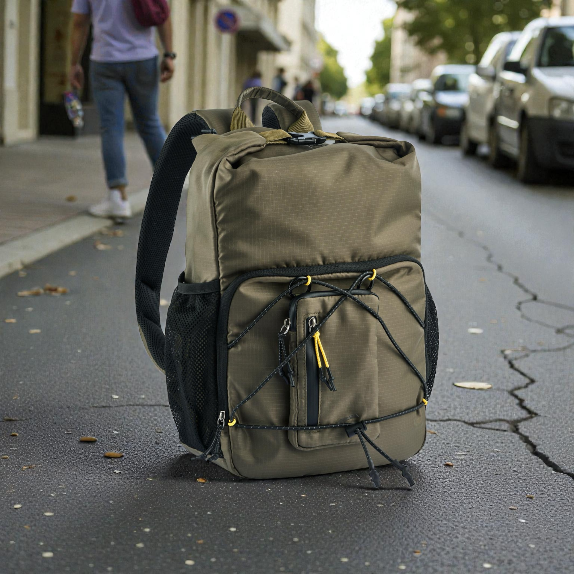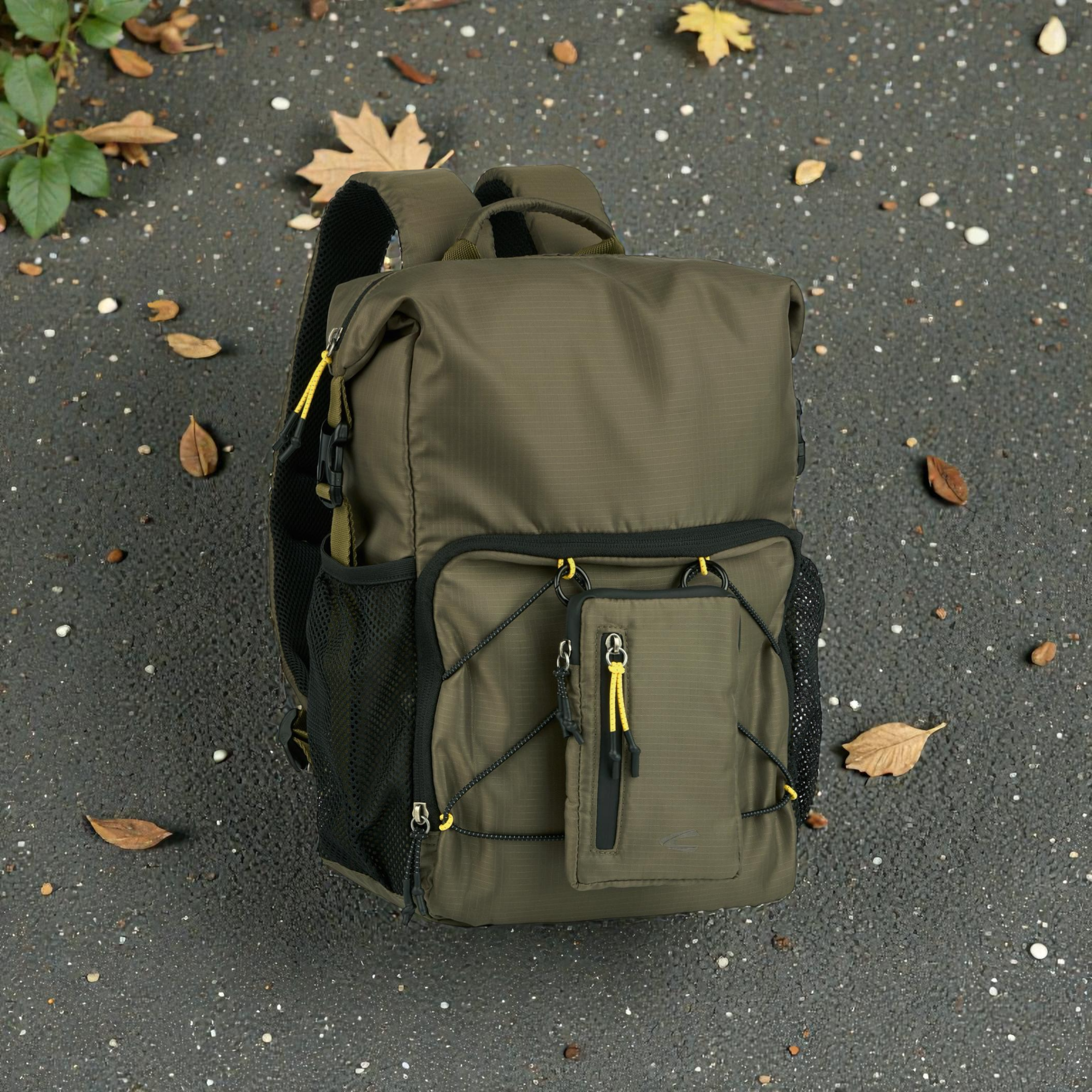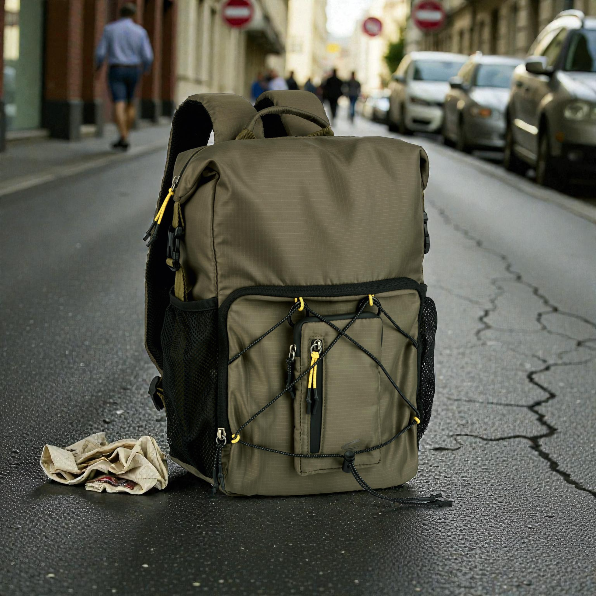 Το rolltop design σου επιτρέπει να ρυθμίζεις εύκολα τη χωρητικότητα. Κλείνεις με push lock και συνεχίζεις με ασφάλεια, ενώ η ευρύχωρη κύρια θήκη με φερμουάρ κρατά τα πράγματα προστατευμένα. Επιπλέον, οι ελαστικοί ιμάντες σύσφιξης στο μπροστινό μέρος βοηθούν να σταθεροποιείς το φορτίο σου, ειδικά όταν κινείσαι γρήγορα. Για τα μικροπράγματα, χρησιμοποιείς την μπροστινή τσέπη με φερμουάρ, ενώ η αποσπώμενη μπροστινή τσέπη σου δίνει έξτρα ευελιξία μέσα στη μέρα. Επίσης, οι δύο πλαϊνές διχτυωτές τσέπες με ελαστικό τελείωμα είναι ιδανικές για μπουκάλι ή αντικείμενα που θες άμεσα.