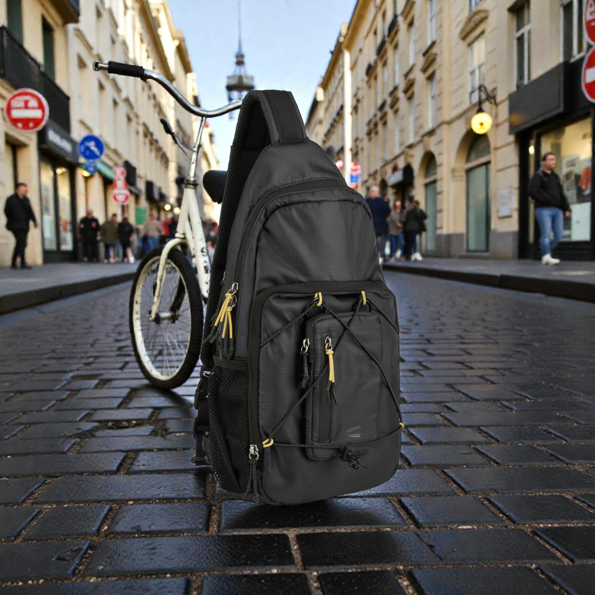 Το sling backpack Camel Active Shores σε μαύρο χρώμα σου δίνει άνεση και γρήγορη πρόσβαση στα απαραίτητα, όταν κινείσαι outdoor ή μέσα στην πόλη. Η σειρά Shores παραμένει εξαιρετικά ελαφριά και συνδυάζει εκλεπτυσμένη λειτουργικότητα με σύγχρονη, υψηλής αντίθεσης αισθητική. Παράλληλα, τα σπορ κορδόνια και οι ανακλαστικές λεπτομέρειες δίνουν χαρακτήρα και βοηθούν στην ορατότητα, όταν η μέρα συνεχίζει σε χαμηλό φωτισμό.