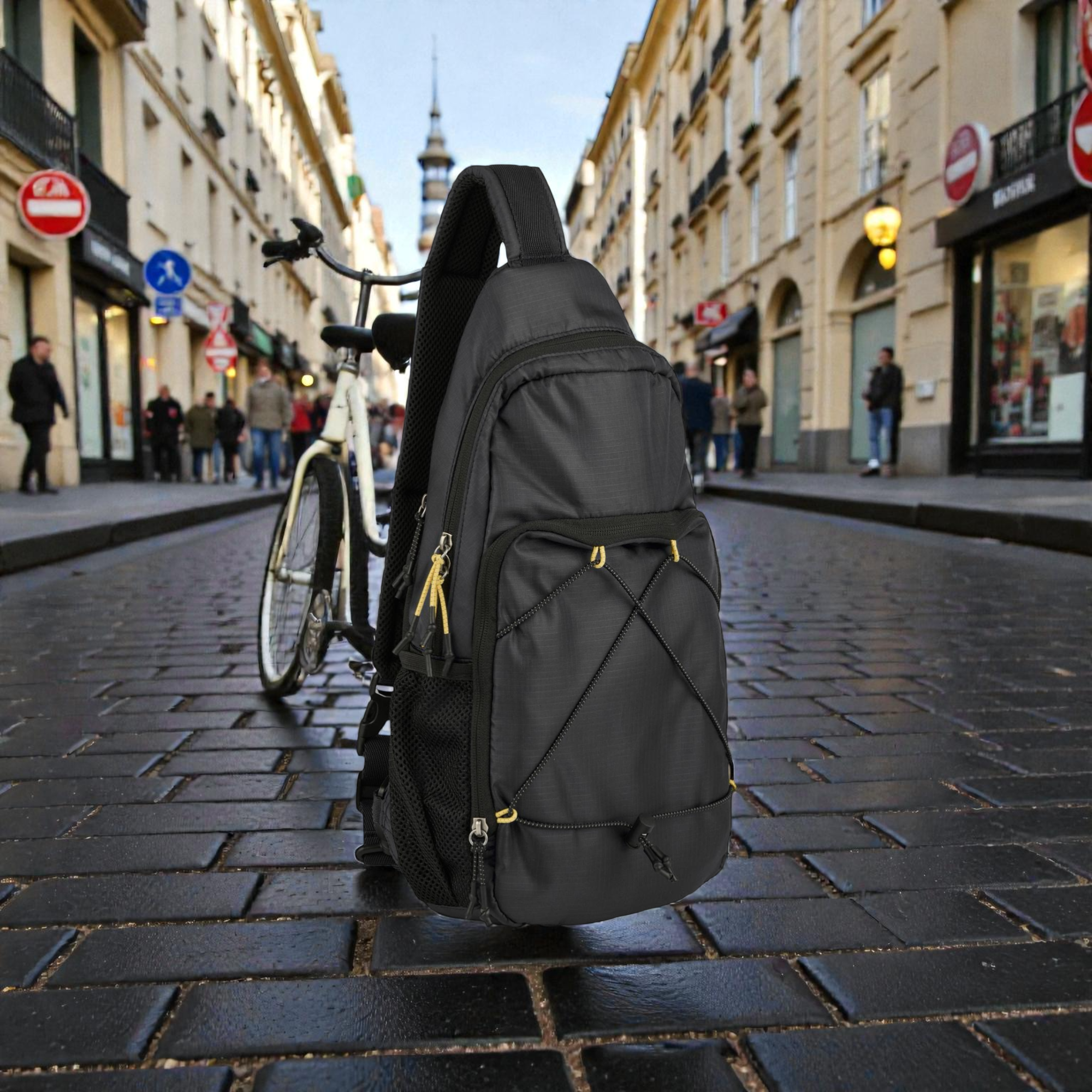 • Sling backpack με κύριο διαμέρισμα που κλείνει με φερμουάρ