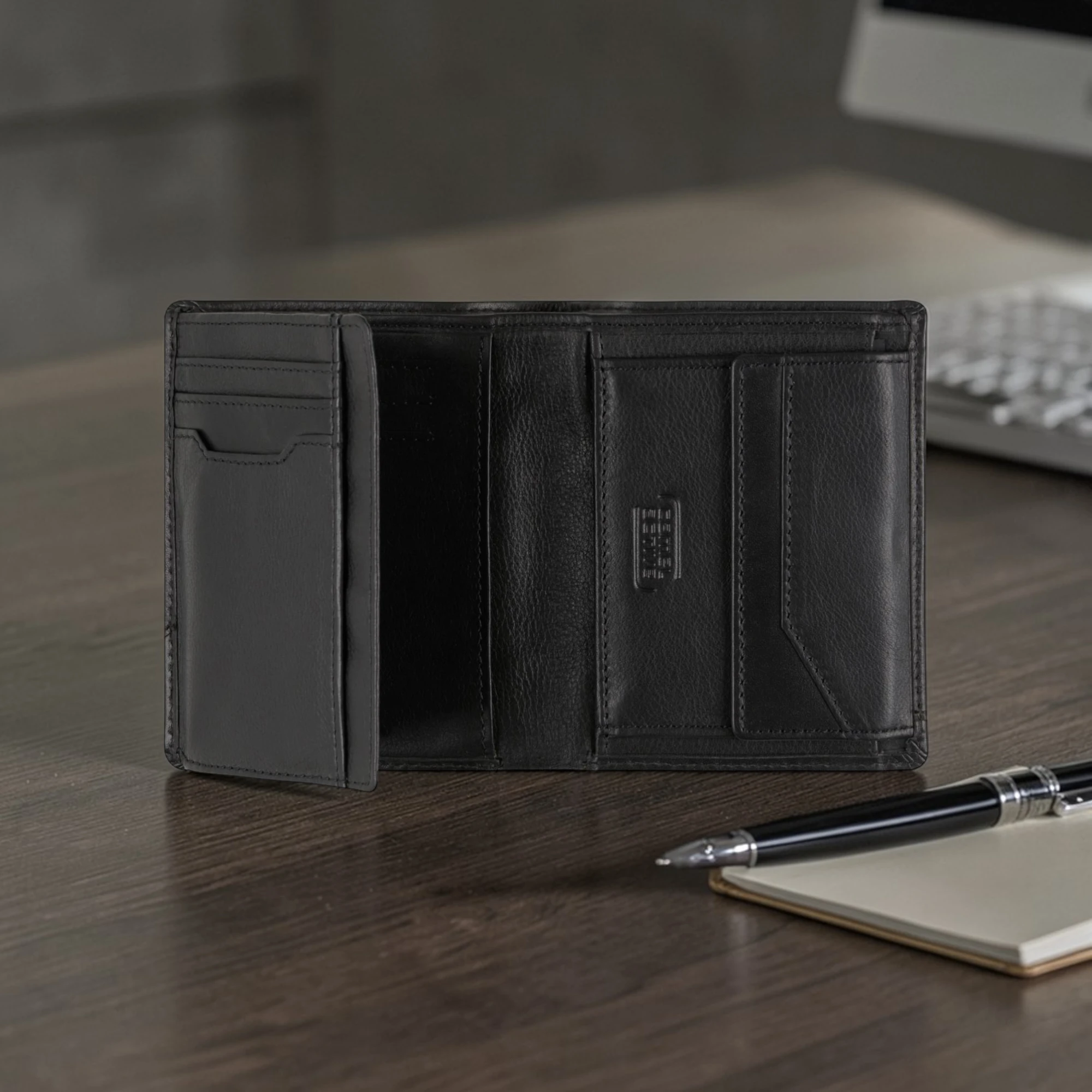 Το εσωτερικό διαθέτει πρακτικές θήκες που κρατούν τα πάντα τακτοποιημένα. Οι κάρτες, τα χαρτονομίσματα και τα κέρματα παραμένουν οργανωμένα, ώστε να βρίσκεις άμεσα αυτό που χρειάζεσαι. Έτσι αποκτάς ένα πορτοφόλι που συνδυάζει κομψότητα και καθημερινή λειτουργικότητα.
