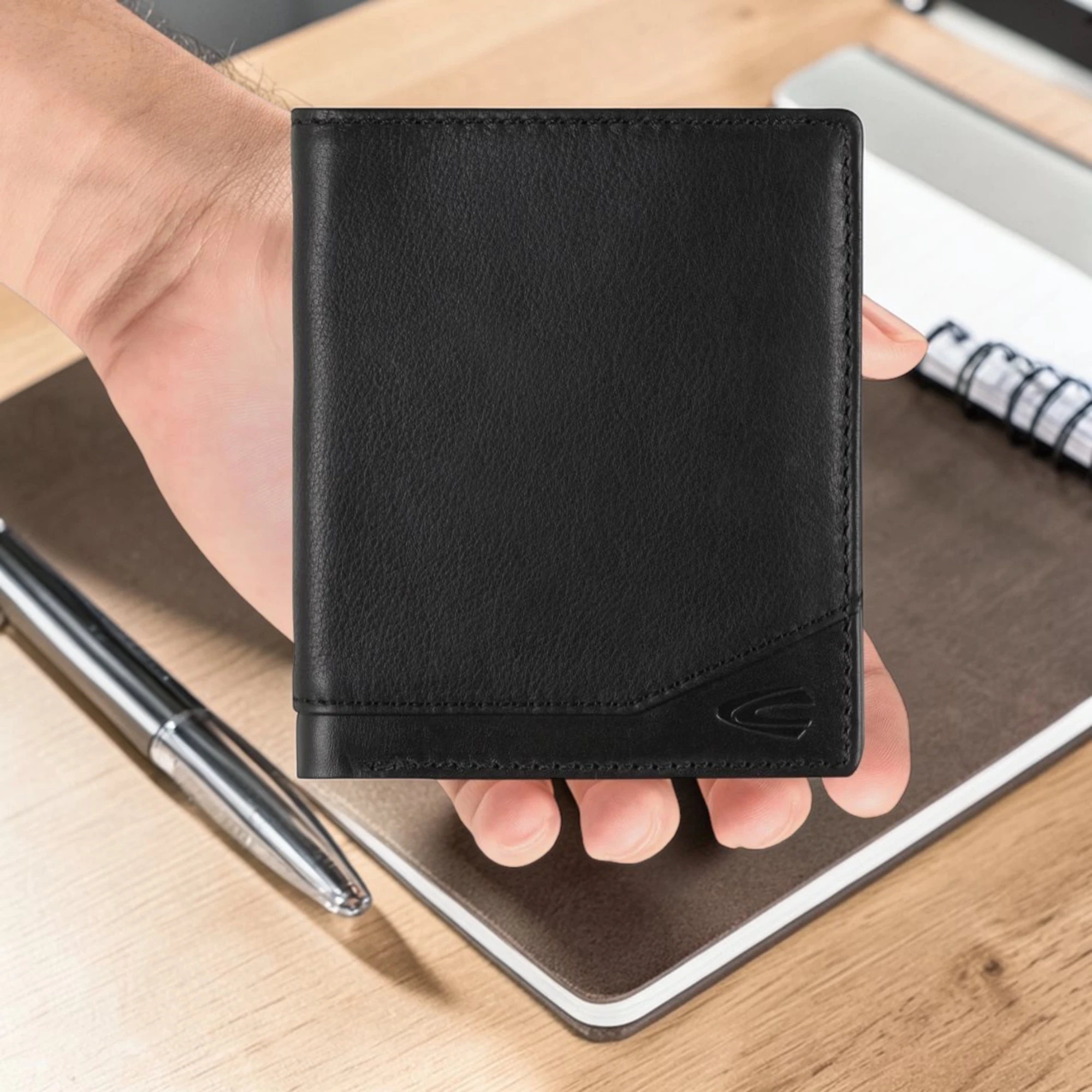 όρθιο πορτοφόλι camel active Stone ξεχωρίζει για τη μοναδική υφή του και τη λειτουργική του σχεδίαση. Ο συνδυασμός από απαλά σαγρέ και τραχιά, ελαφρώς ματ αγελαδινή επιδερμίδα δημιουργεί ένα ιδιαίτερο αποτέλεσμα που προσθέτει χαρακτήρα στον κομψό σχεδιασμό. Παράλληλα, η ποιοτική κατασκευή εξασφαλίζει αντοχή στη καθημερινή χρήση.