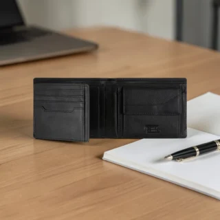 Ο χώρος για κάρτες είναι γενναιόδωρος, ενώ οι πρόσθετες θήκες καλύπτουν αποδείξεις και έγγραφα. Η θήκη με διαφανές πλέγμα διευκολύνει την ταυτότητα ή μια φωτογραφία, και η θήκη για κέρματα με κουμπί κρατά τα κέρματα σταθερά. Τα δύο χωρίσματα για χαρτονομίσματα ολοκληρώνουν μια διάταξη που δουλεύει σωστά στην καθημερινή χρήση.
