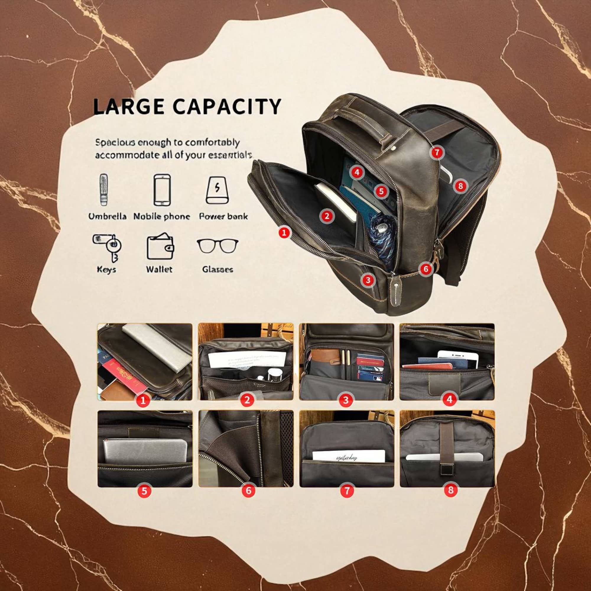 • Γνήσιο δέρμα υψηλής ποιότητας: Premium cowhide που προσφέρει αντοχή και κομψό vintage στυλ για καθημερινή χρήση ή επαγγελματικά ταξίδια.
