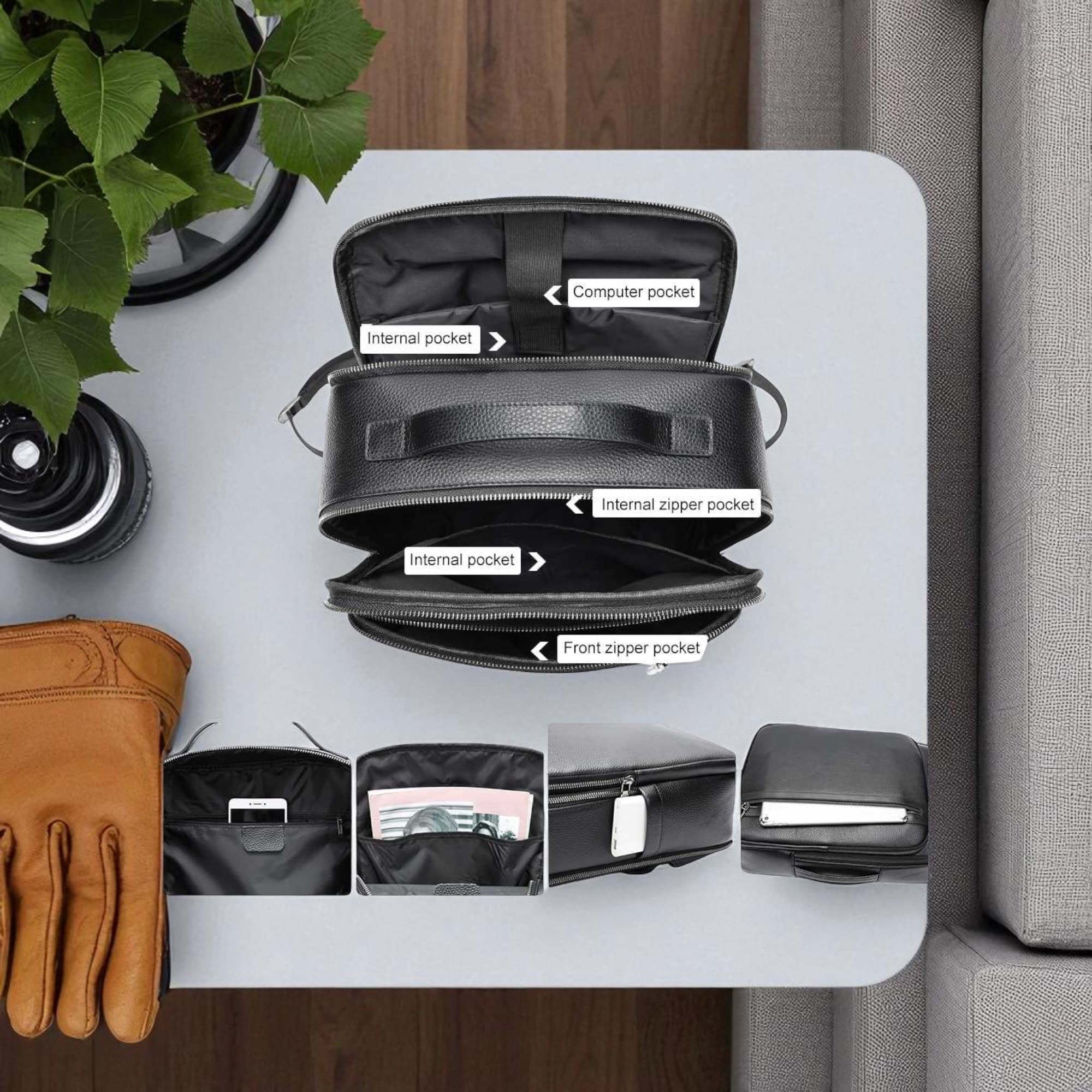 • Οργάνωση & άνεση: Κεντρικός χώρος για laptop 15″ και έγγραφα Α4, εσωτερικές θήκες με φερμουάρ, θήκες για κινητό και πορτοφόλι, πλαϊνές και μπροστινές τσέπες για άμεση πρόσβαση.