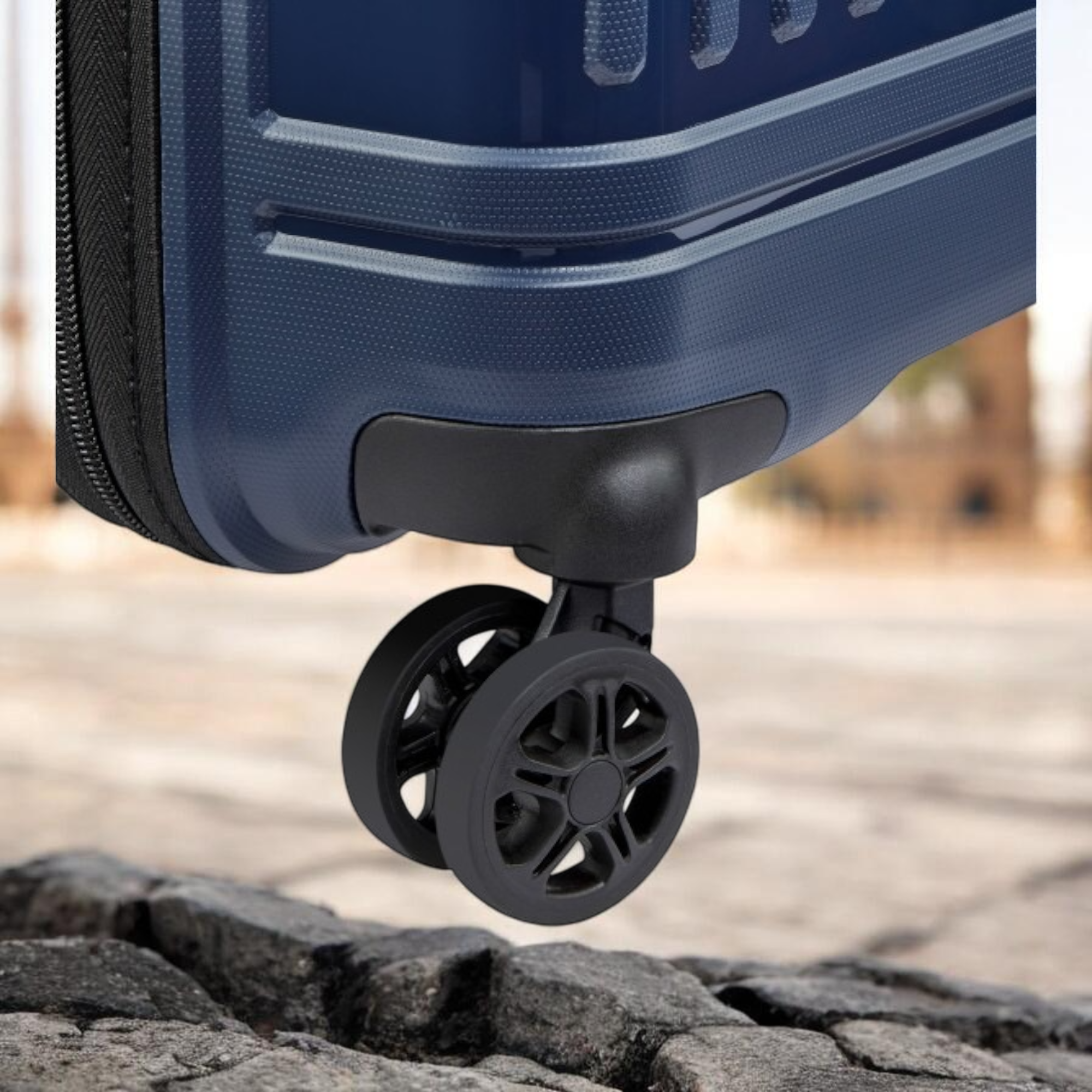 Χάρη στον slim σχεδιασμό, η βαλίτσα περνά άνετα στις περισσότερες προδιαγραφές καμπίνας, ενώ η λειτουργία επέκτασης 2cm προσφέρει επιπλέον χωρητικότητα όταν τη χρειάζεστε. Οι 4 διπλές περιστρεφόμενες ρόδες εξασφαλίζουν ομαλή και αθόρυβη κύλιση προς κάθε κατεύθυνση, ακόμα και σε γεμάτα αεροδρόμια.