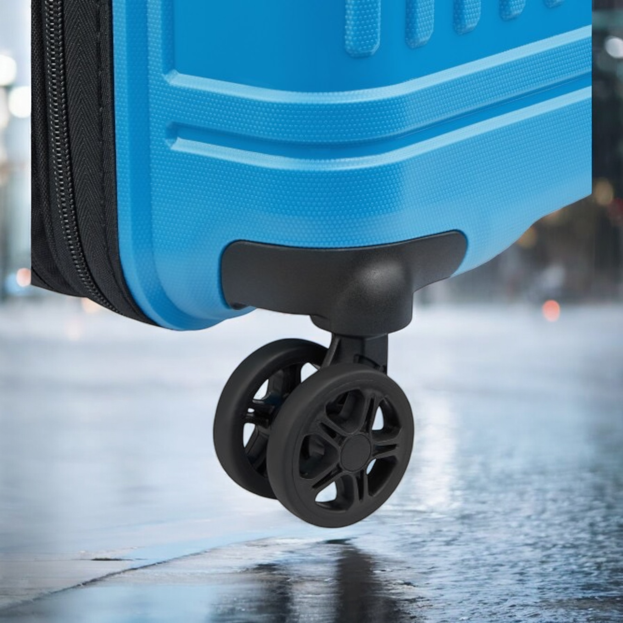 Το slim μέγεθος της βαλίτσας την καθιστά κατάλληλη για τις περισσότερες αεροπορικές εταιρείες, ενώ η δυνατότητα επέκτασης κατά 2 cm σου δίνει επιπλέον χώρο όταν τον χρειάζεσαι, χωρίς να χάνεις την ευελιξία της καμπίνας. Η μετακίνηση γίνεται ξεκούραστα χάρη στις 4 διπλές περιστρεφόμενες ρόδες, που εξασφαλίζουν ομαλή κύλιση και σταθερό έλεγχο.