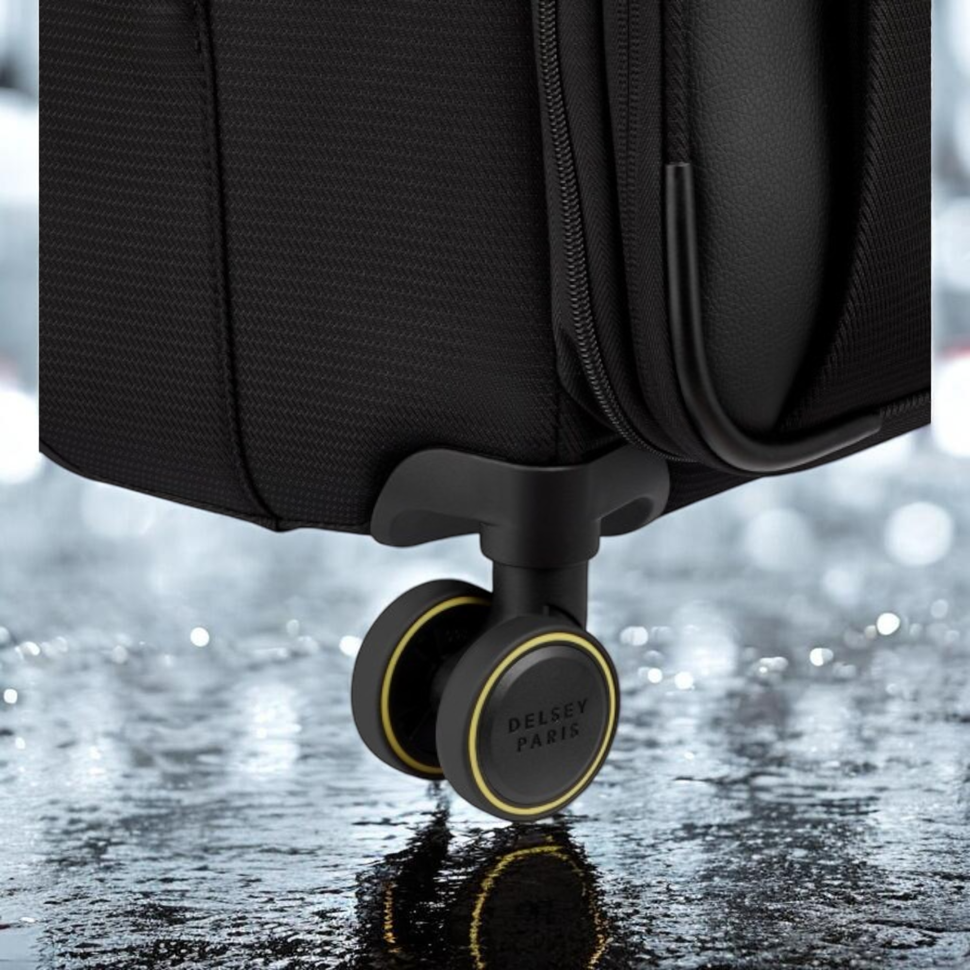 Οι 4 διπλές ρόδες εξασφαλίζουν ομαλή και σταθερή κύλιση προς κάθε κατεύθυνση, προσφέροντας άνετη μετακίνηση ακόμα και σε απαιτητικά περιβάλλοντα. Η κατασκευή από ανακυκλωμένο polyester συνδυάζει αντοχή και οικολογική συνείδηση, χωρίς συμβιβασμούς στη λειτουργικότητα.