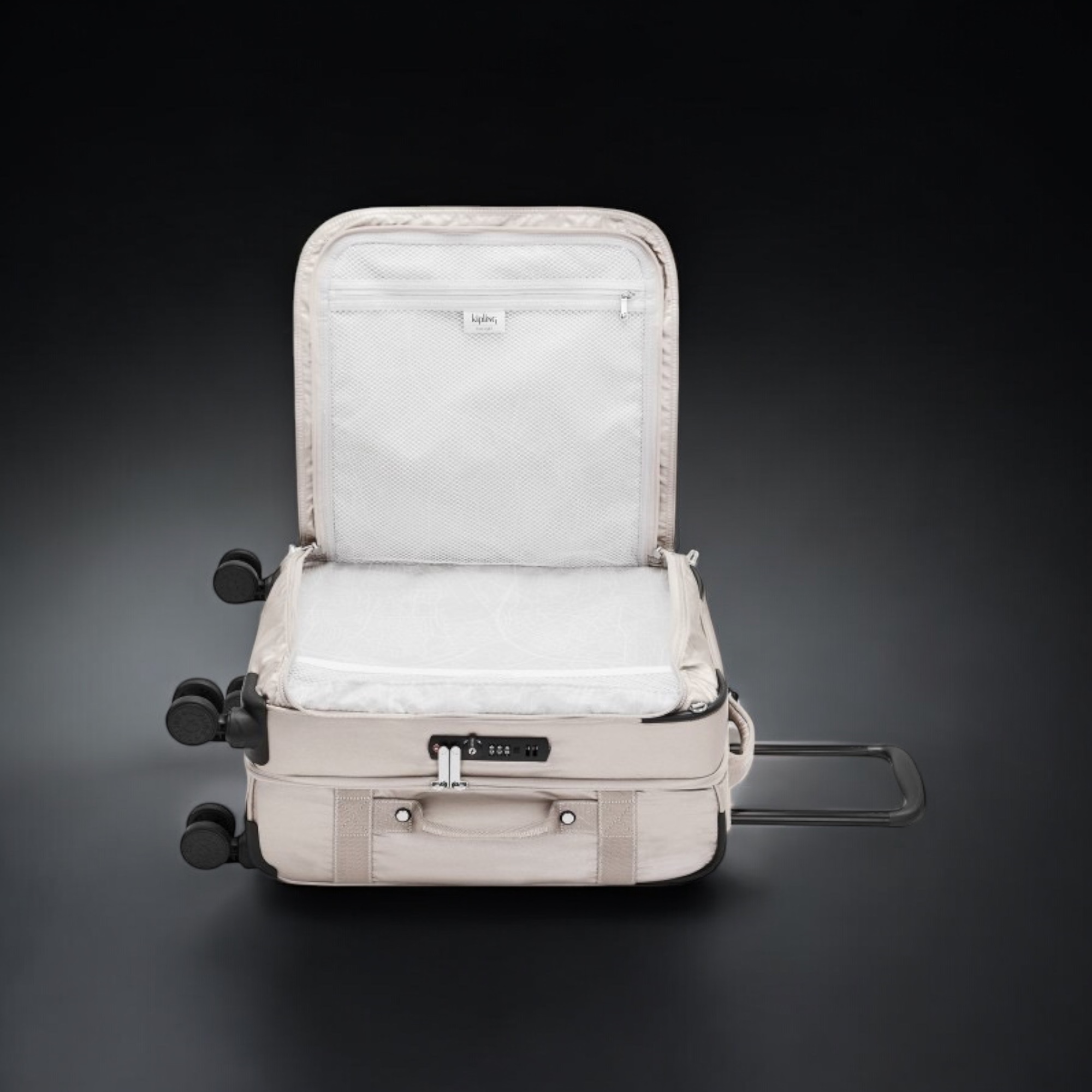 Στο εσωτερικό, η βαλίτσα διαθέτει κεντρική θήκη με φερμουάρ, προσφέροντας πρακτικότητα και σωστή οργάνωση, ενώ οι επάνω και πλαϊνές λαβές μεταφοράς διευκολύνουν το σήκωμα και τον χειρισμό. Το κομψό στρογγυλό λογότυπο Kipling και η ετικέτα αποσκευών από σιλικόνη ολοκληρώνουν την premium αισθητική της.