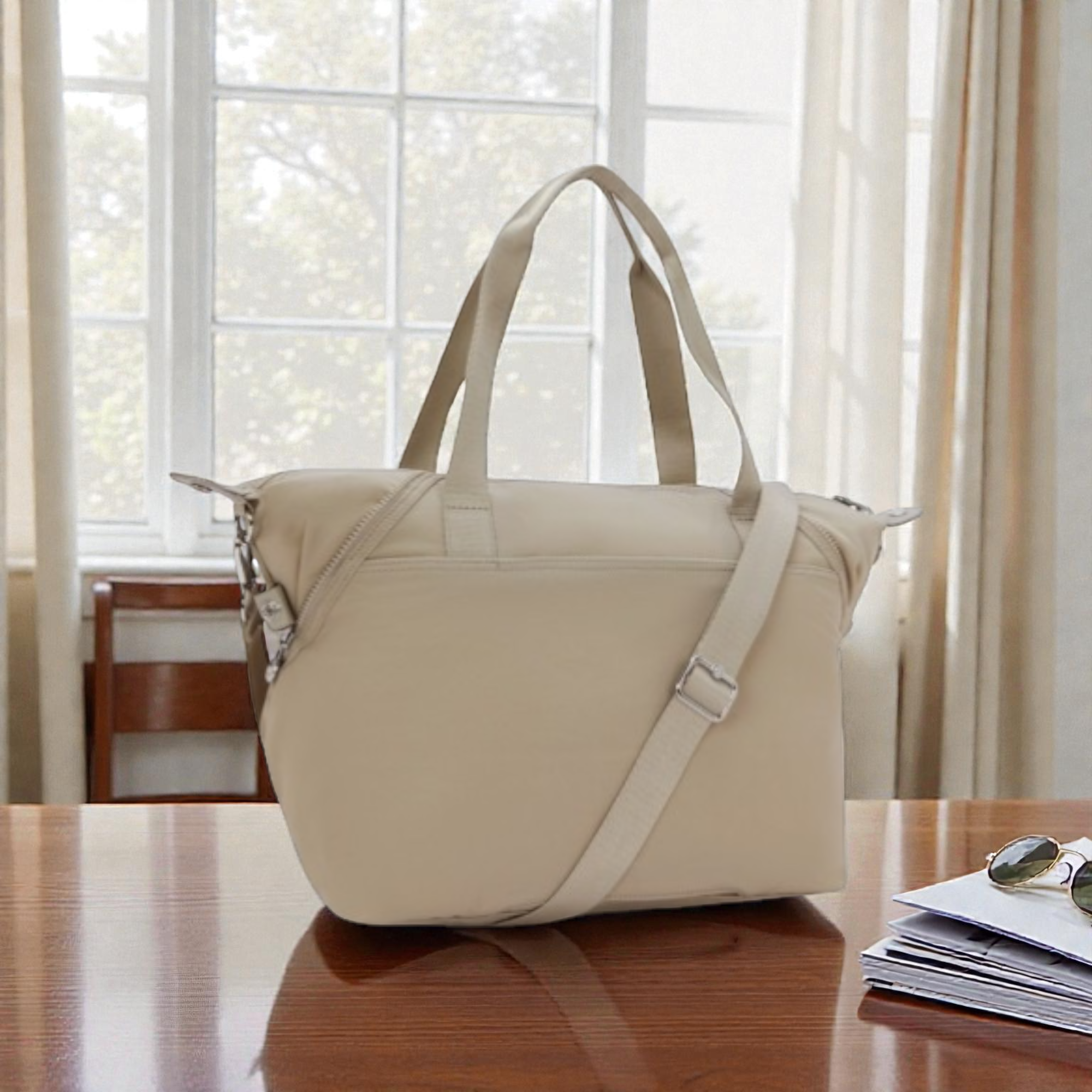 Kipling τσάντα ώμου που δίνει χώρο, οργάνωση και άνεση σε κάθε μέρα. Η New Art Duo Pocket σε απόχρωση Boho Tan συνδυάζει πρακτικότητα με ανάλαφρο στιλ, ώστε να τη φοράς από το πρωί μέχρι το γραφείο και τις απογευματινές μετακινήσεις. Η ευρύχωρη κεντρική θήκη ανοίγει εύκολα και σε βοηθά να τακτοποιείς σωστά όσα χρειάζεσαι, ενώ οι πολλές τσέπες κρατούν τα μικροαντικείμενα στη θέση τους.