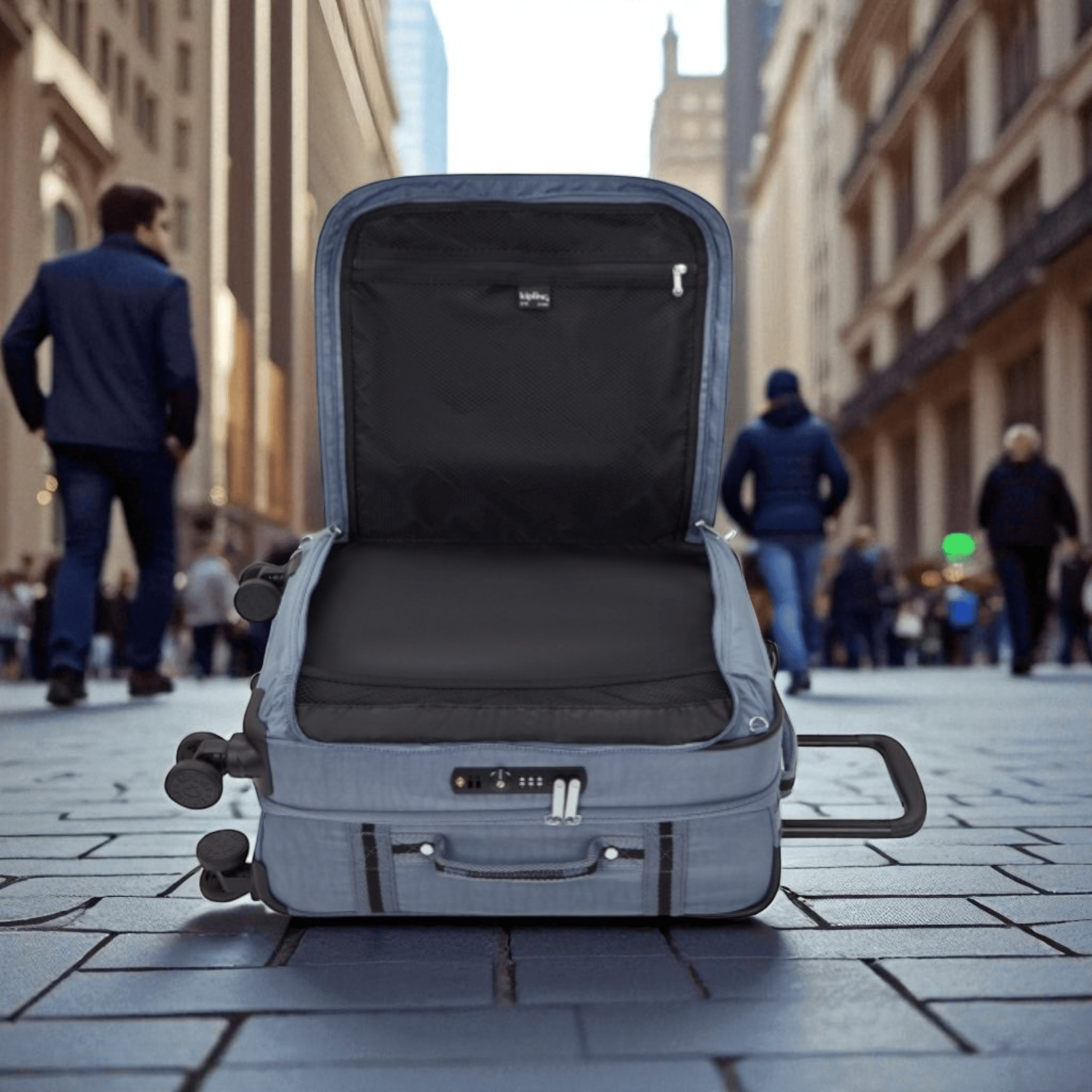 Η Kipling Spontaneous μπλε βαλίτσα καμπίνας συνδυάζει κομψό design, οικολογική συνείδηση και ευχρηστία. Με εργονομικό σχεδιασμό, ανακυκλωμένα υλικά και πρακτικά χαρακτηριστικά για καθημερινές και αεροπορικές μετακινήσεις, αποτελεί ιδανική επιλογή για γυναίκες που ταξιδεύουν με στυλ.