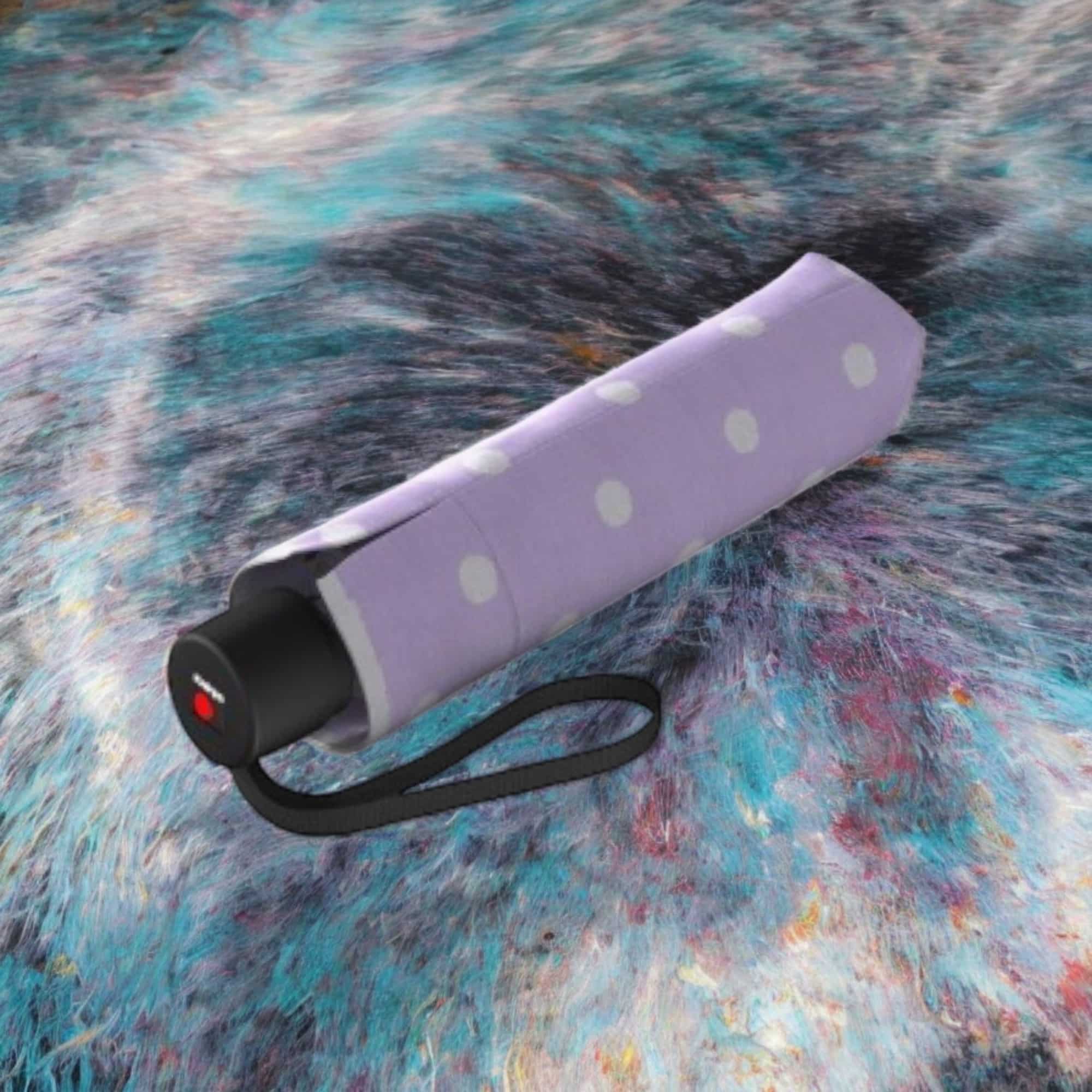 Ομπρέλα Knirps A.050 Manual Dot Art Lavender – Η premium ομπρέλα που προσφέρει άνεση για όλους και ξεχωρίζει με τον μοναδικό καλλιτεχνικό σχεδιασμό Dot Art σε απαλό μωβ χρώμα. Ο μεγάλος θόλος της προστατεύει ακόμη και δύο άτομα, ενώ ο χειροκίνητος μηχανισμός επιτρέπει άνετο άνοιγμα και κλείσιμο χωρίς κόπο.