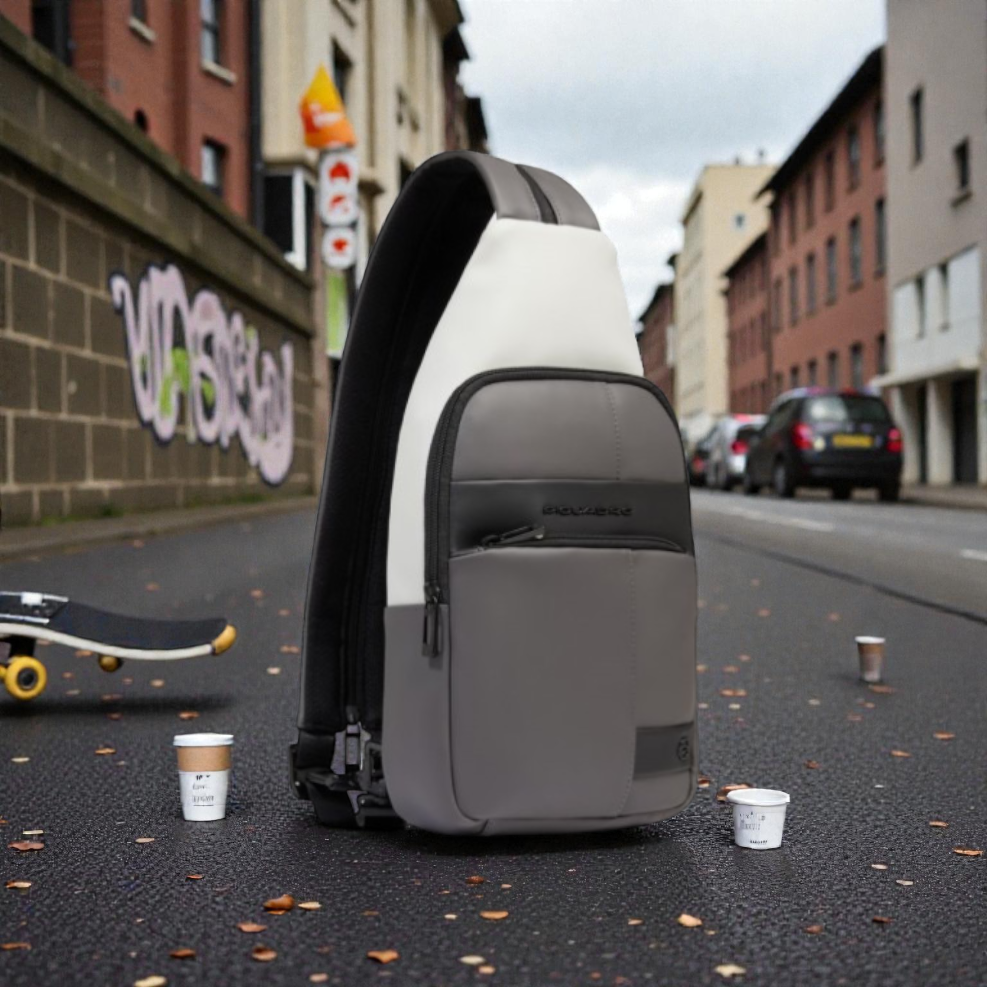 Τσάντα sling Piquadro Wollem σε γκρι/μαύρο που σου δίνει ευελιξία και ασφάλεια στις μετακινήσεις. Τη φοράς όπως σε βολεύει, είτε στον ώμο είτε σαν σακίδιο πλάτης, ώστε να αλλάζεις στιλ και άνεση μέσα στη μέρα. Παράλληλα, η αδιάβροχη κατασκευή κρατά τα πράγματά σου προστατευμένα, ακόμη κι όταν σε πετύχει βροχή ή κινείσαι σε απαιτητικές συνθήκες πόλης.