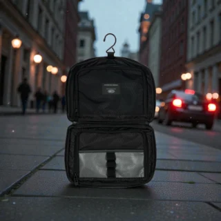 Το νεσεσέρ προστατεύει το περιεχόμενο, γιατί διαθέτει αδιάβροχο εξωτερικό υλικό και αδιάβροχα φερμουάργια μεγαλύτερη σιγουριά σε βαλίτσα, σακίδιο ή χειραποσκευή. Κερδίζεις οργάνωση, επειδή οι εσωτερικές τσέπες κρατούν σταθερά τα προϊόντα περιποίησης, ενώ ο γάντζος για κρέμασμα σε βοηθά να το χρησιμοποιείς άνετα σε μπάνιο ξενοδοχείου ή σε μικρούς χώρους. Επιπλέον, η ανακλαστική λωρίδα προσθέτει διακριτική ορατότητα και σύγχρονο χαρακτήρα, ενώ η θήκη αποθήκευσης σε διευκολύνει στη μεταφορά.